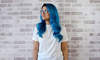 'Remove pink jacket, change hair color to blue'